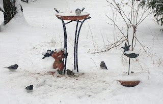 like Christmas.........again. What is with this weather? I am not complaining....not after seeing the pictures from down south. But it's been snowing now for almost 12 hours and it is supposed to continue until midnight. It is also very cold and I feel so sorry for the animals. I fed them well yesterday, so hopefully they will make it until tomorrow. They have been digging in the snow and finding a little something...